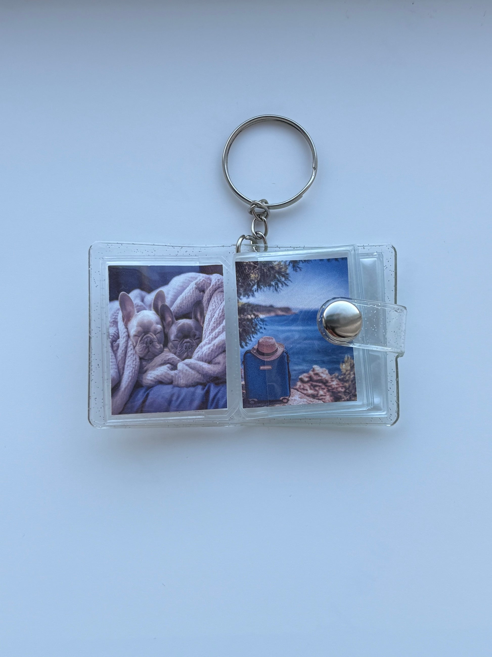 Our transparent mini photo album keyring is the perfect blend of sentiment and style. Small enough to fit in your pocket and spacious enough to hold up to 20 mini photos, it’s a unique keepsake that goes wherever you go — and yes, the price includes printing all 20 photos!